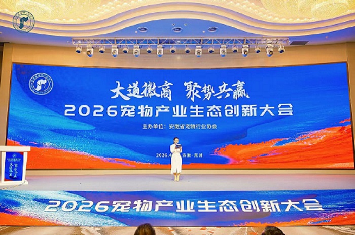 2026年4月24日,2026宠物产业生态创新大会于芜湖顺利举办。本次大会由安徽省宠物行业协会主办,以“大道徽商,聚势共赢”为主题,汇聚各级主管部门领导、多地宠物行业协会领导、全国行业精英,专家学者与企业代表,共探宠物产业高质量发展新路径。大会立足安徽、联动长三角,搭建技术交流与商贸对接高能级平台。安徽中龙国公司创作为安徽宠物药品标杆企业受邀参加,彰显安徽宠物医药产业优势与创新实力。会议倡导弘扬徽商精神,聚资源、聚标准、聚品牌、向未来。立足江淮粮仓优势,聚力打造宠物产业高地。