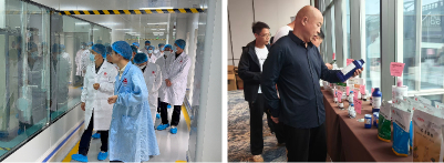 下午领导嘉宾统一乘坐大巴到达中龙集团总部基地中龙国创。嘉宾们首先零距离感受了按照欧盟高标准建造的GMP生产车间,透过明亮的参观走廊,高度自动化的生产线、严格的人流物流分离设计、以及一尘不染的生产环境尽收眼底。嘉宾们频频驻足,对国际化的质量管理体系和精益求精的工匠精神给予了高度评价。随后,嘉宾移步至研发创新中心。在参观过程中,先进高尖端的科研设备和丰硕的荣誉墙成果展示,彰显了公司的创新活力。生产中心和研发中心点燃了嘉宾们的热情,大家一路探讨,一路点赞,对公司的综合研发实力和生产水平表示了高度认可。
